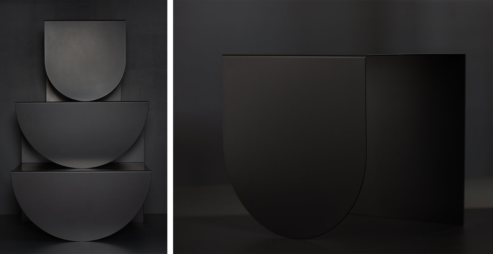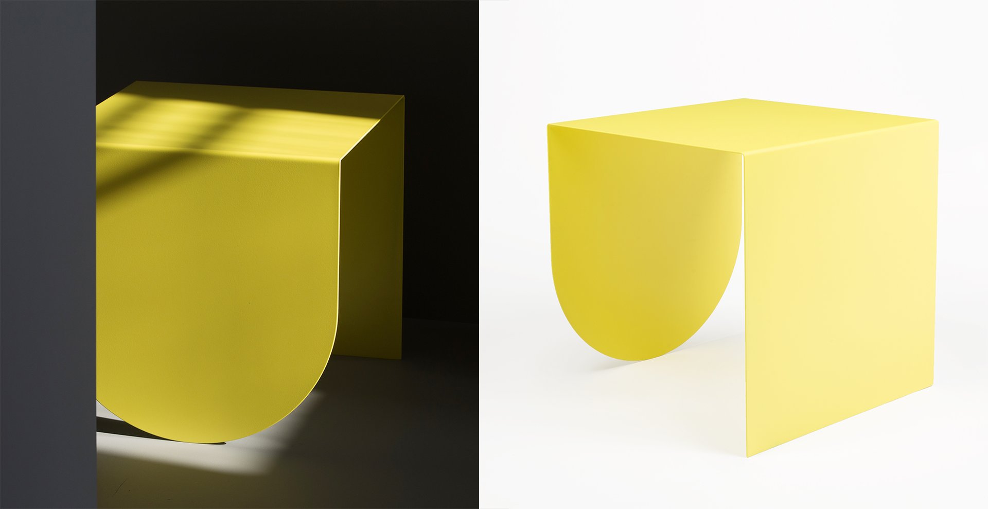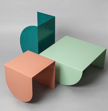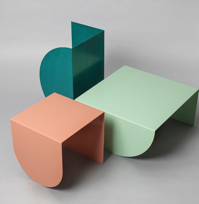 3LEGS TABLE COLLECTION is the work of David Tarcali. The three different tables are inspired by geometric patterns and architectural shapes. The name 3LEGS reflects the simplicity of how these forms work in our everyday life. Each table is folded from a single sheet of 3mm-thick steel that gives them a distinctively abstract appearance seen from different perspectives. The playful but minimalistic tables were featured in several publications such as COS, elleDECOR US, sightunseen, wallpaper magazine and mocoloco.