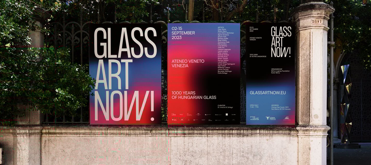Scenography, visual identity, exhibition design and web design for the exhibition organised by the Bohus-Lugossy Foundation during Venice Glass Week. 2023