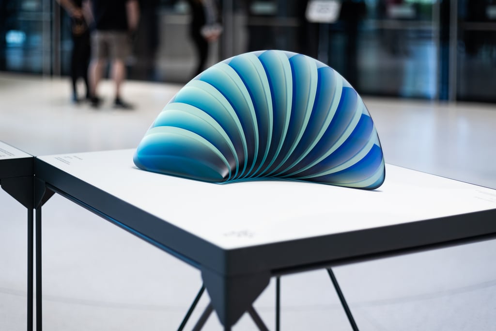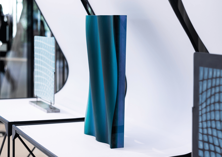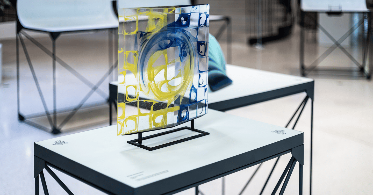 Alongside the artworks, a custom-designed typeface inspired by the dynamics and effects of glass, together with integrated lighting, installation, and graphic design, creates a cohesive visitor experience.