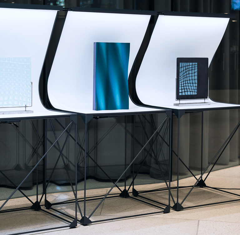 We designed modular installations that doubled as large-scale lightboxes. These provided a seamless white background and even controlled lighting, eliminating most reflections and distractions. This approach enhanced the visual clarity of the artworks, making them both more striking in person and easier to capture in photographs.