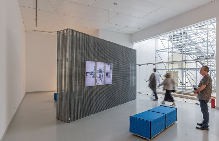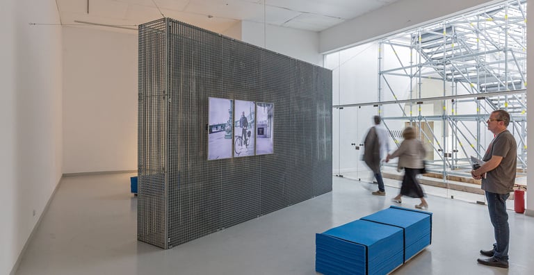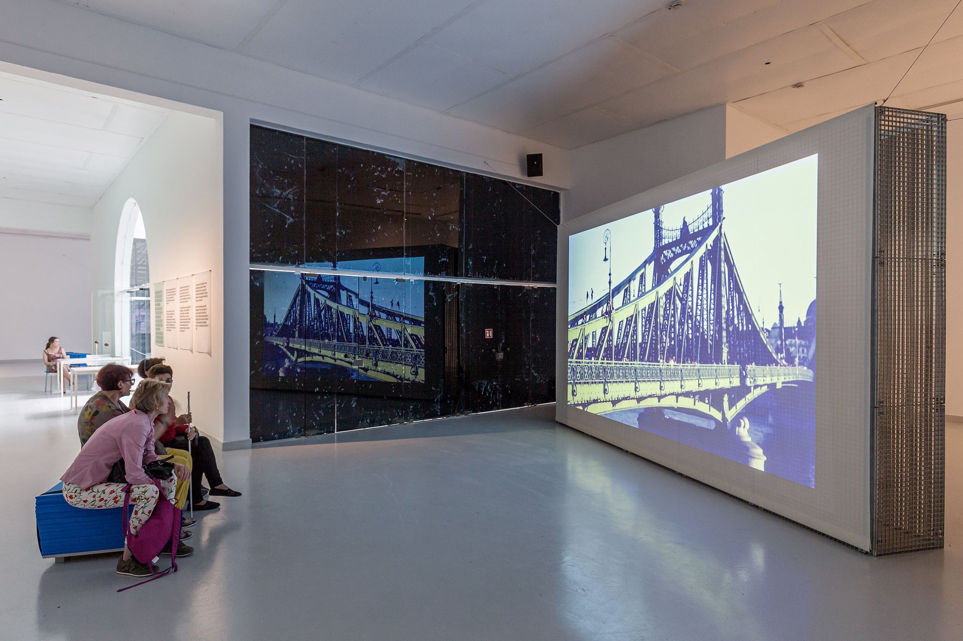 The central element of the exhibition is the temporary architectural installation in the atrium: a lookout tower that allows visitors to access the building in a never-before-seen way. In the first room, a video installation of archive footage shows what kind of process led to the occupation of Liberty Bridge in 2016. Through the three milestones of the bridge's recent history, the temporal interpretation of the events expands and we can examine how our relationship to public space has transformed since the political changes.