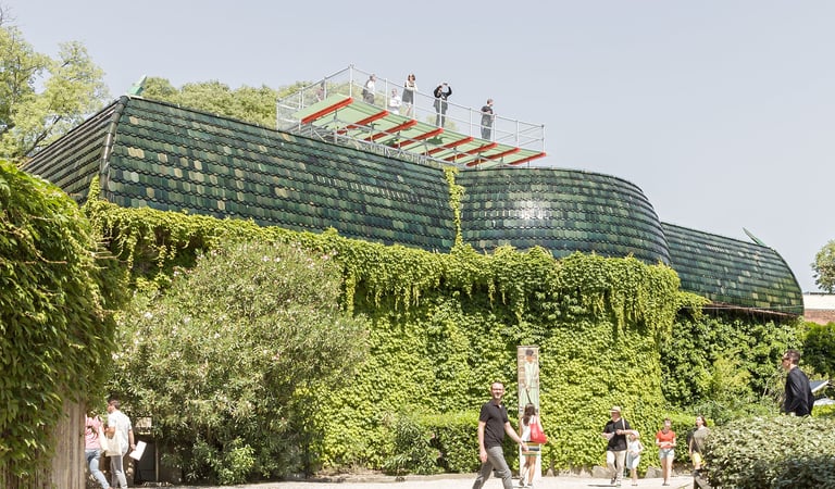 The architecture of the upper level of the lookout tower is similar to the central supporting structure of Liberty Bridge. Visitors can relax, enjoy the view, assess their position, and see a new horizon on the slightly curved surface.