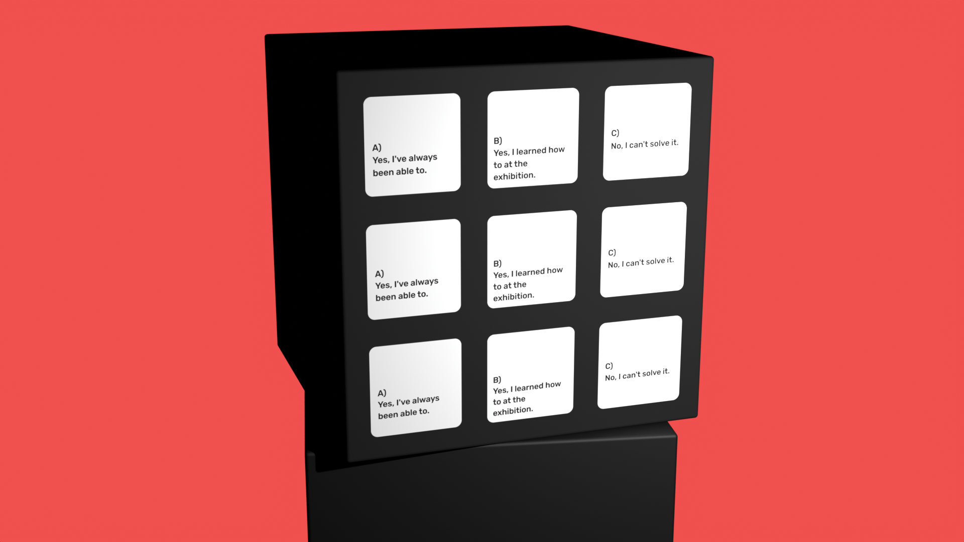 In today’s digital world, this exhibition pays tribute to the Rubik’s Cube as a game with lasting value.