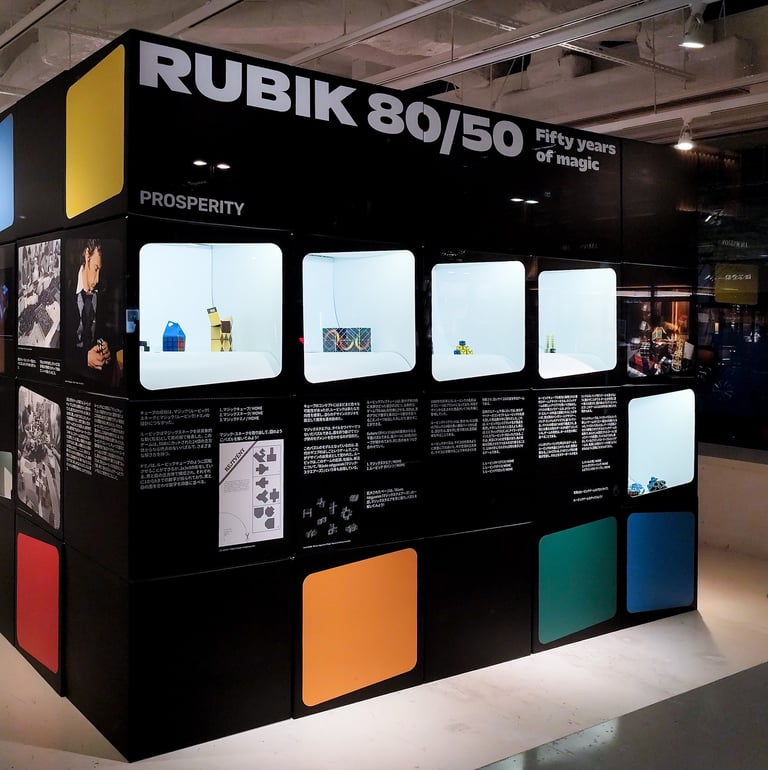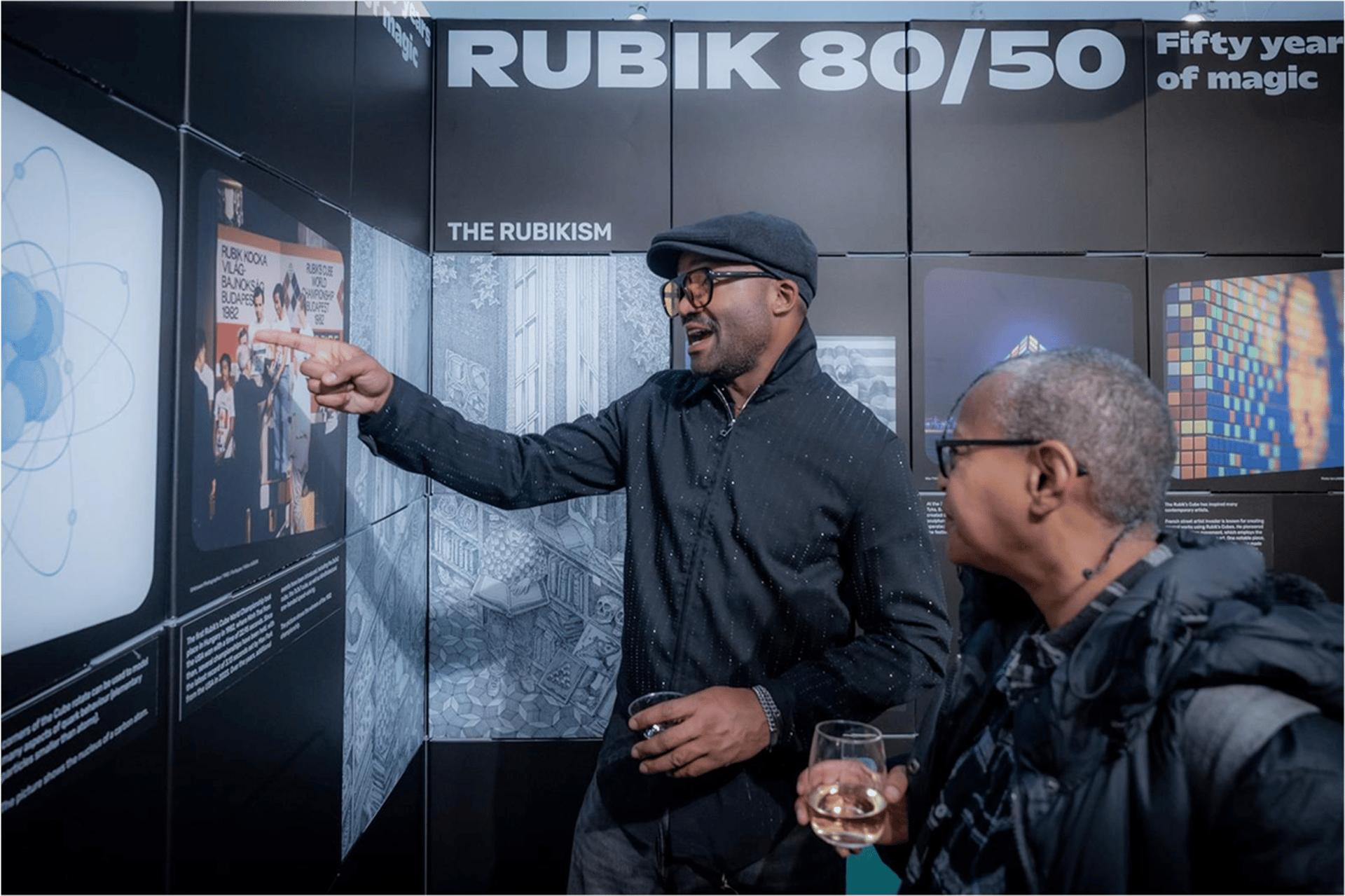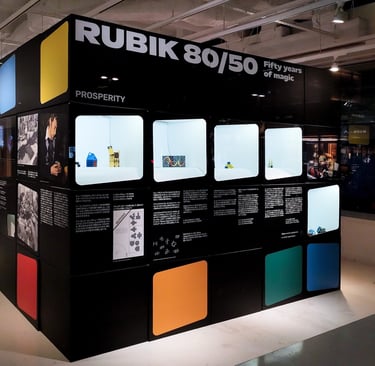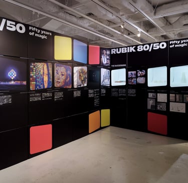 As DE_VISION, we were invited late in the design process to strengthen the connection between visitors and the exhibition, encouraging learning through interaction. Centered on Ernő Rubik, inventor of the iconic Rubik’s Cube, our goal was to make his legacy tangible by creating interactive touchpoints and weaving gamification into an exhibition about one of the world’s most celebrated games.